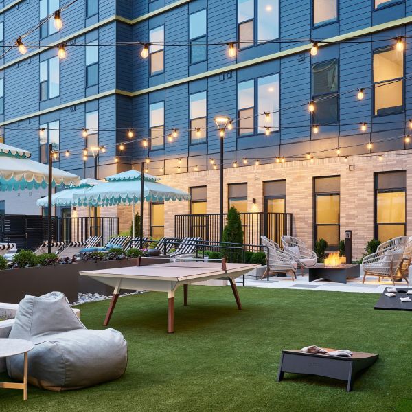 Socialize with friends in the outdoor lounge area and grilling area, or enjoy the poolside courtyard with firepits, and outdoor games.